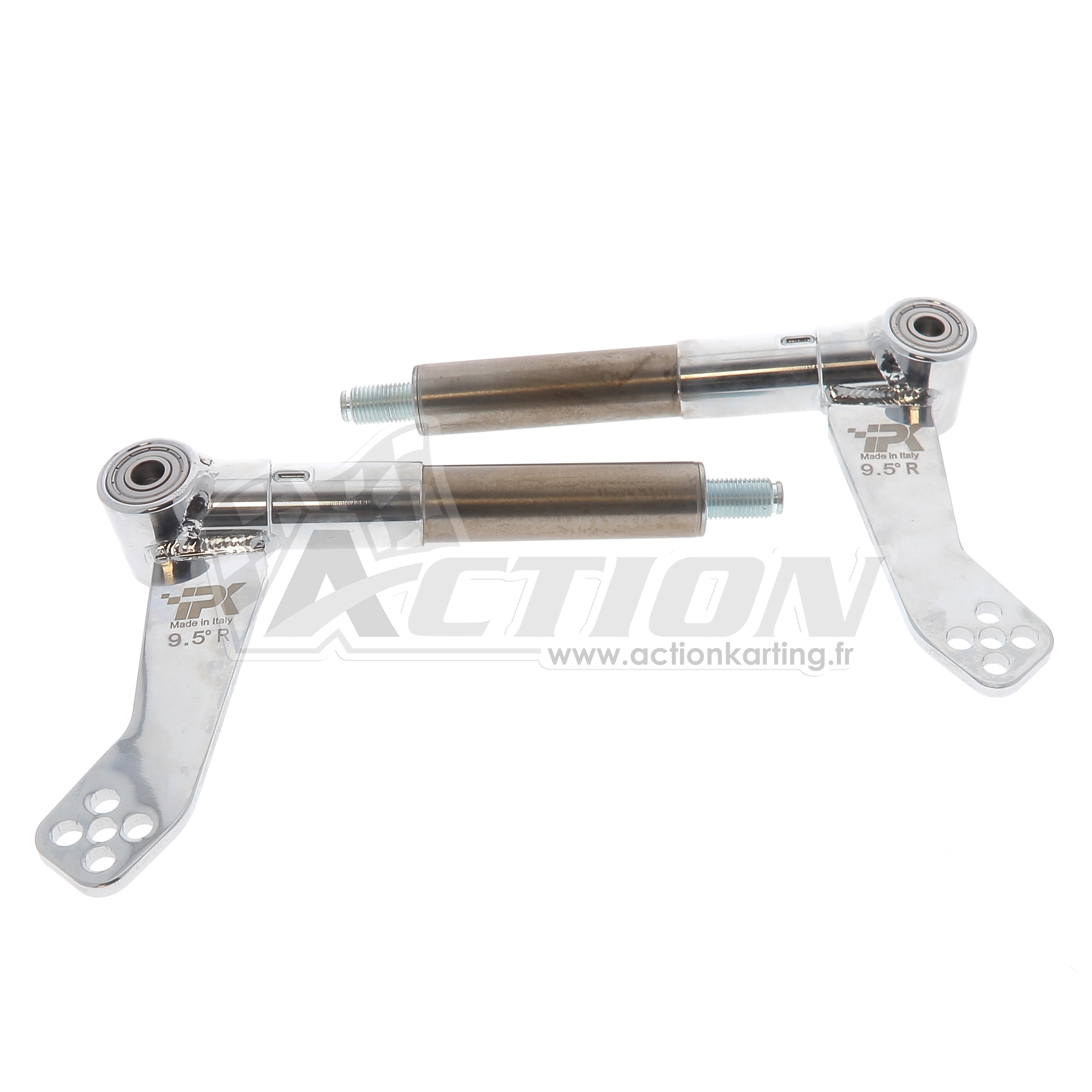 • Fusée à 9,5 degrés: C'est le choix qui permet de libérer l'avant du kart au centre du virage et lors de sa sortie. Il est généralement utilisé sur une piste à forte adhérence, mais peut également être monté dans des conditions d'adhérence moyenne, en fonction du type de montage utilisé.